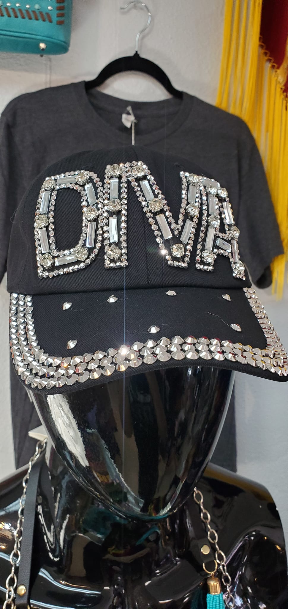 Black Denim Rhinestone Diva Ball Cap