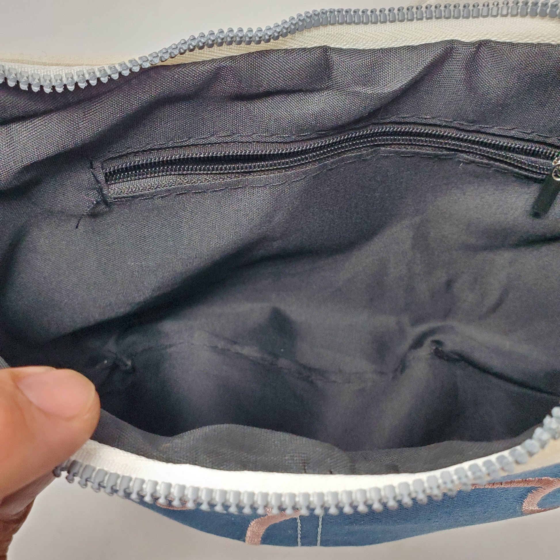 zipper top with inside side zipper pocket