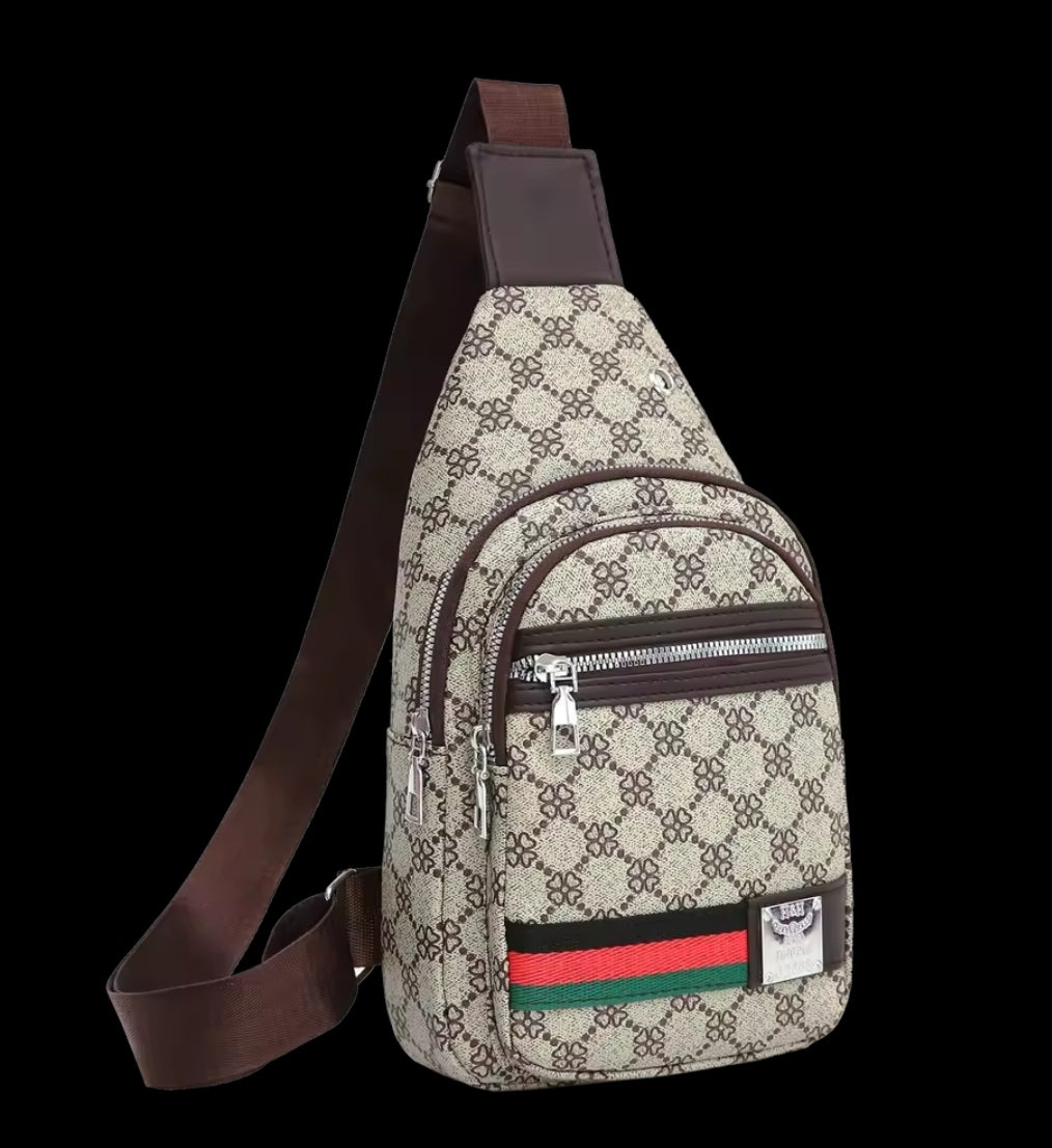 Mens / Women's Crossbody multifunction messenger bag Khaki Color w/ Brown Strap