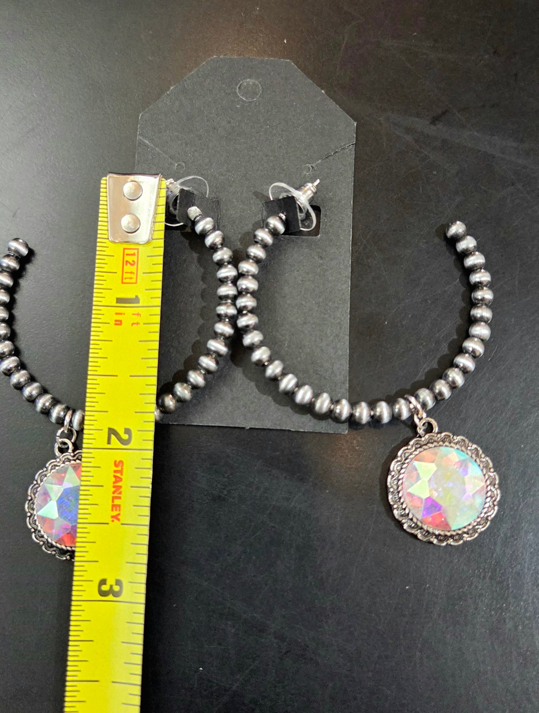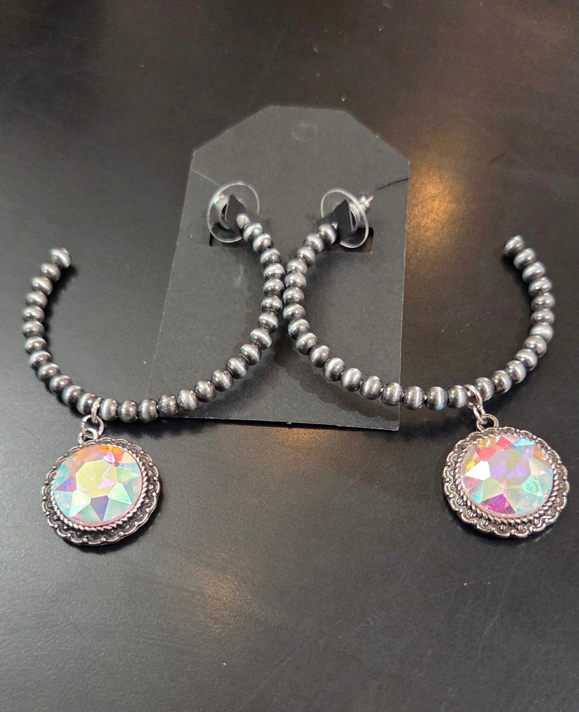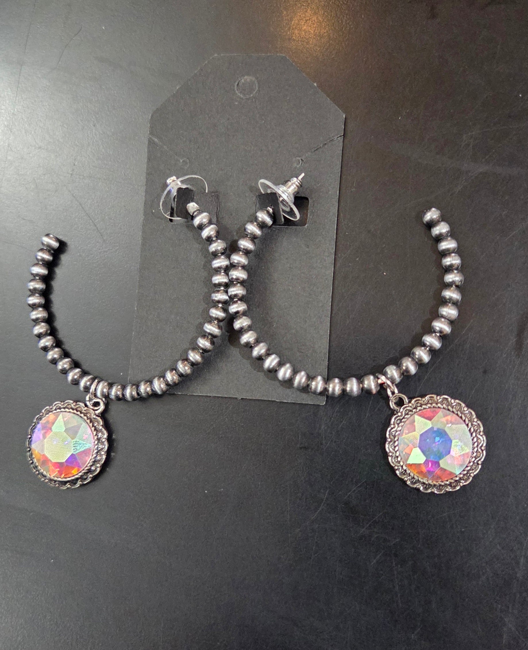 Faux Navajo Pearl Hoop earrings with Glass Crystal Pendant