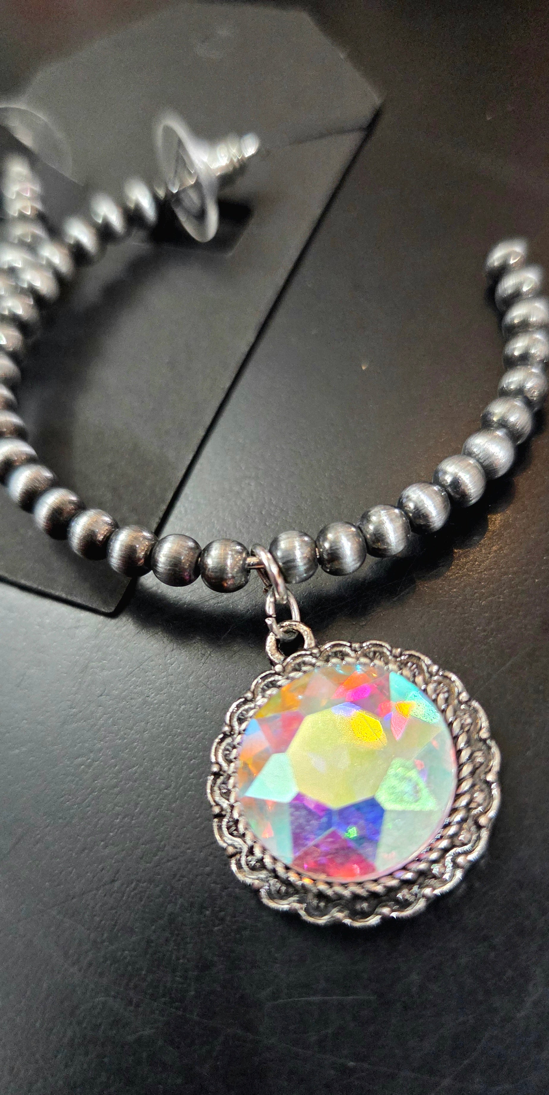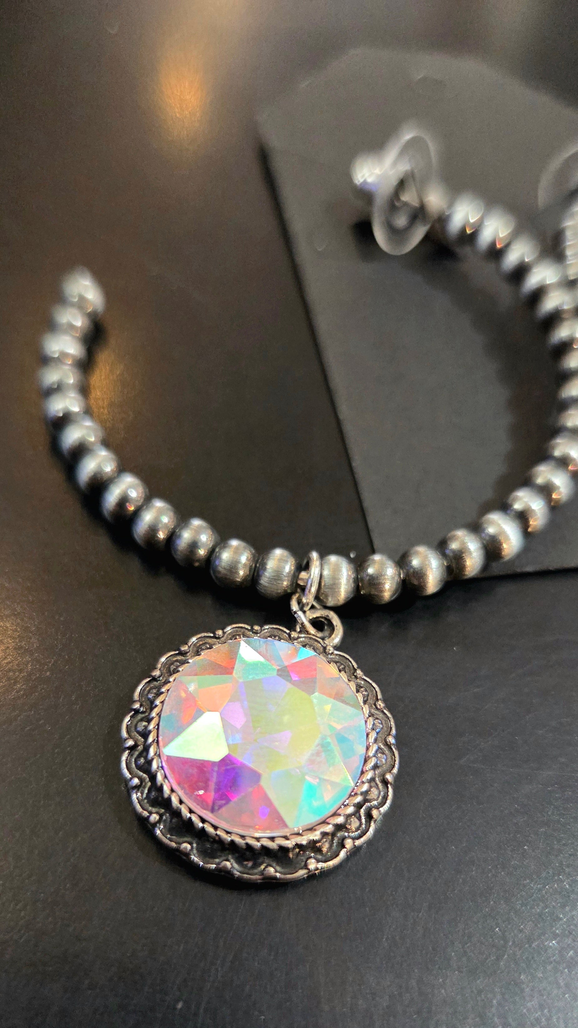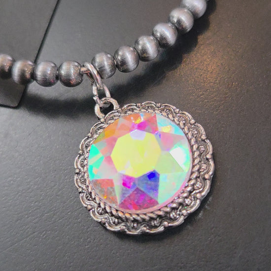 Faux Navajo Pearl Hoop earrings with Glass Crystal Pendant